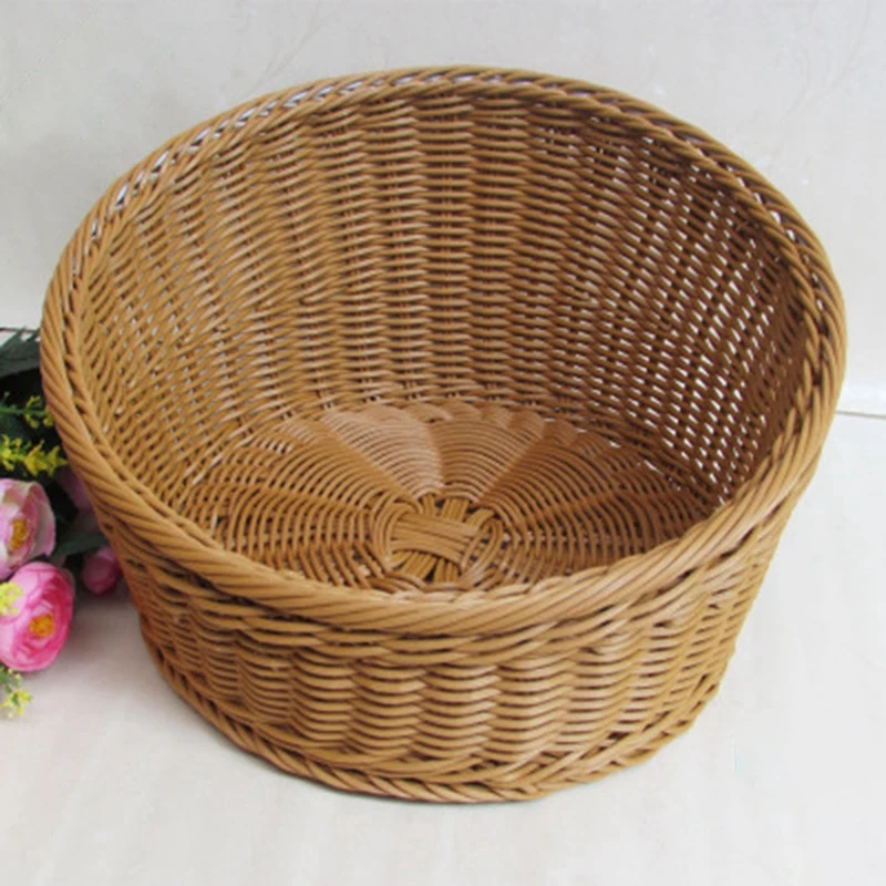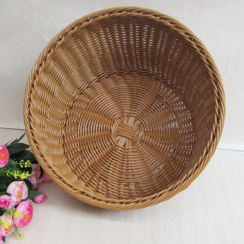 HOT Sale Household Storage Basket Bevel Round Shape Food Bread Fruit Wicker Basket Organizer Home Kitchen Ba