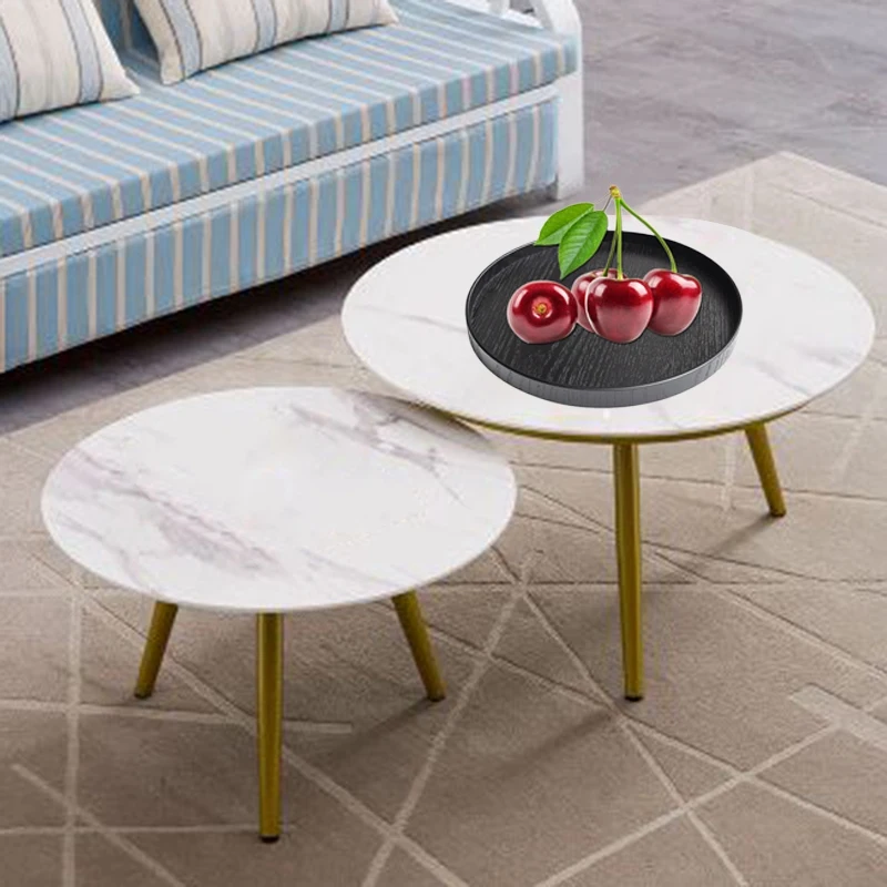 BEAU-1Pc Wooden Vintage Round Serving Breakfast Tray Wood Nesting Platter for Food Coffee