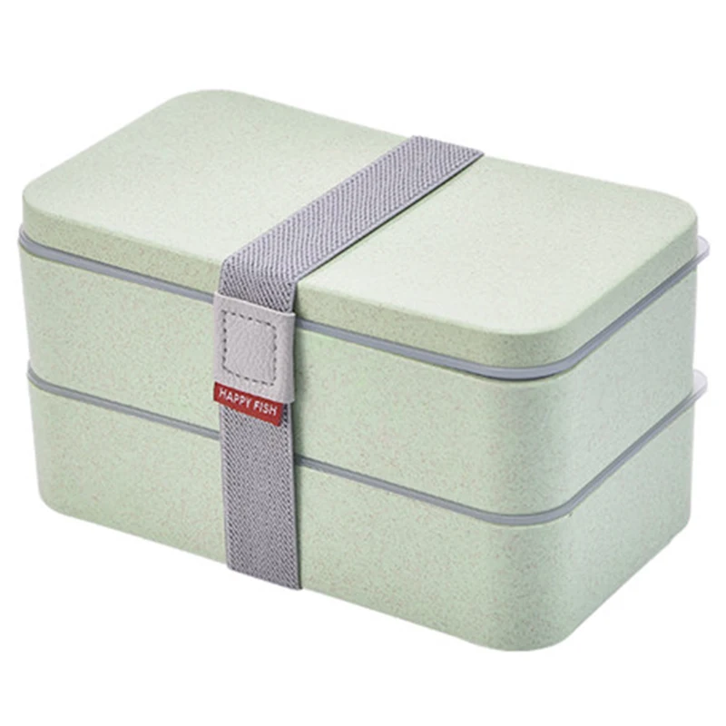 HOT Sale Hot 1200Ml Wheat Straw Double Layers Lunch Box with Spoon Healthy Material Bento Boxes Microwave Fo