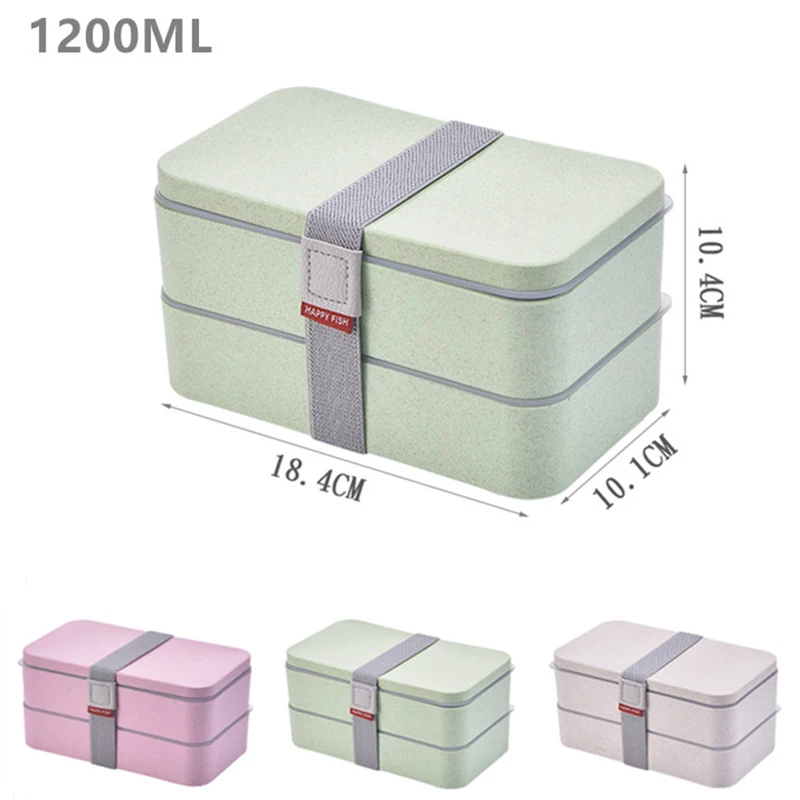 Hot 1200Ml Wheat Straw Double Layers Lunch Box with Spoon Healthy Material Bento Boxes Microwave Fo