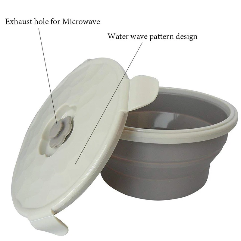 660Ml Food Grade Silicone Collapsible Camping Bowl with Lid for Outdoor HikingLunch Box for Office
