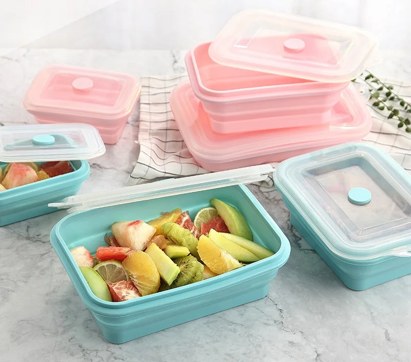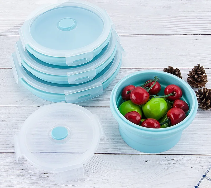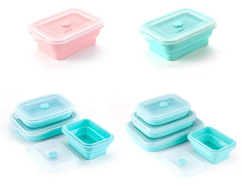 New 3/4PCS Set Collapsible Silicone Bento Lunch Box Portable leakproof Healthy Material Lunch Box F